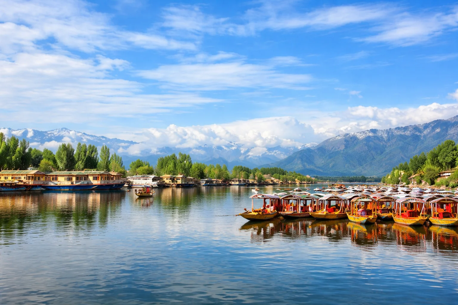 Distance: ~270 km Drive Time: Approx. 5–7 hours Your magical Kashmir journey begins on arrival at Jammu Railway Station, followed by a beautiful drive to Srinagar. As you travel through winding mountain roads, lush valleys, and charming landscapes, let the natural beauty of Kashmir slowly steal your heart. Upon reaching Srinagar, our friendly representative will warmly welcome you and assist with your hotel transfer. After check-in, take some time to relax, refresh, and soak in the calm, peaceful surroundings. As evening falls, enjoy a truly unforgettable experience — dinner and an overnight stay on a traditional houseboat, gently floating on the serene waters of Dal Lake, with soft reflections of the mountains and city lights creating pure magic.